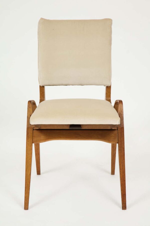 Kursi Cafe Kayu Maurice Minimalis dengan tambahan beludru krem putih yang memberikan kesan mewah. Kursi Cafe Kayu Maurice Minimalis yang indah. Dilapisi kembali dalam beludru krem putih.