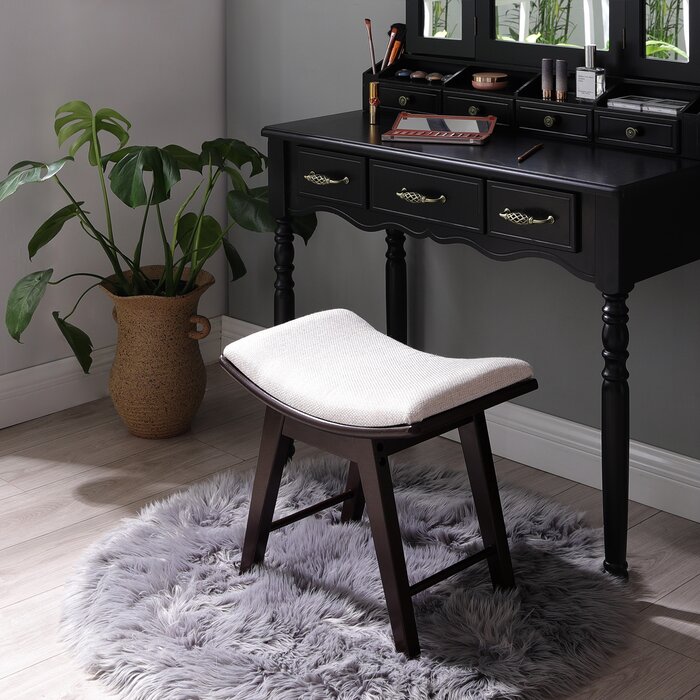 Kursi Meja rias ini dibuat dengan kerangka kokoh kemudian dilapisi dengan kain berkualitas yang lembut. Dengan ukuran yang tidak terlalu memakan tempat, kursi meja rias tetap akan memberikan kesan elegan pada ruangan Anda. Kursi Meja rias kami dapat dibersihkan dengan cepat dan langsung dengan menggunakan alat pembersih umum di rumah Anda. Hal ini karena tekstur dan struktur kayunya yang halus dan kering sehingga sangat mudah dibersihkan.