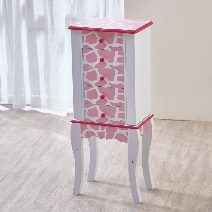 Apakah anak Anda memiliki berbagai macam aksesori fesyen yang perlu dia simpan? Beri mereka lemari seunik gayanya dengan Lemari Anak Minimalis Terbaru Jewelry ini. 5 Lemari laci menampilkan wajah zebra dan trim merah muda cerah yang indah.