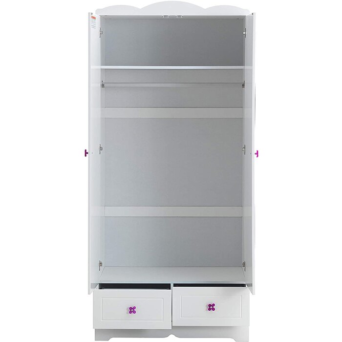 Lemari Baju Anak Minimalis Rosabel berwarna putih menciptakan kesan bersih dan imut di kamar anak perempuan. Memiliki 2 pintu dan 2 laci penyimpanan di luar, 1 kompartemen terbuka, dan pegangan tangan dari dalam.