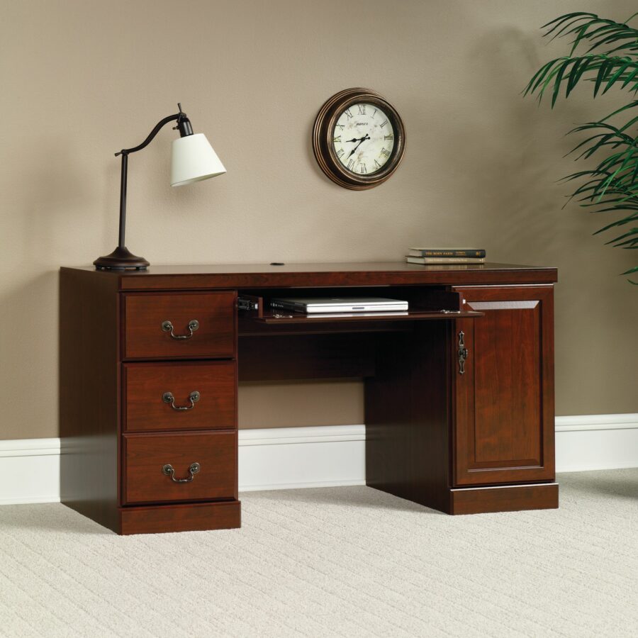 Tingkatkan ruang kerja kantor Anda dengan Meja Kerja Murah Credenza ini. Bagian atas meja yang luas memberi Anda ruang untuk semua kebutuhan kantor Anda? laptop, tablet, kertas, dan pena! Laci laptop / keyboard gesernya memiliki bagian depan lipat dan dilengkapi dengan slide ekstensi penuh dan soket ekstensi dengan tiga outlet untuk pengisian daya yang nyaman dan akses listrik untuk gadget kantor Anda. Fitur lain termasuk laci penyimpanan kecil yang mudah meluncur, laci bawah yang menampung file gantung berukuran surat, legal, atau Eropa, area penyimpanan di balik pintu untuk melubangi menara CPU vertikal, dan pegangan grommet untuk akses kabel. Selesai dalam Cherry Klasik, meja yang indah ini akan menghidupkan kantor rumah Anda.