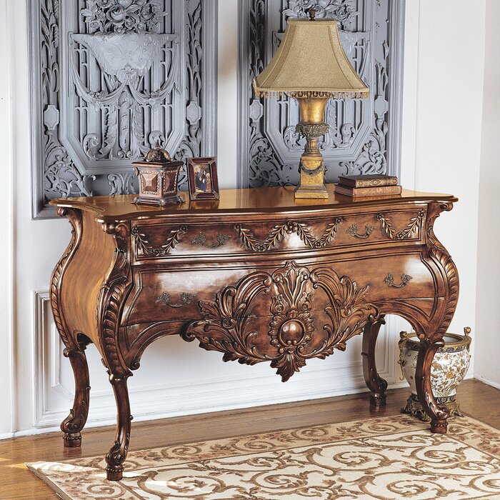 Berukuran sangat mengesankan, ukiran tangan, kayu jati yang kokoh dengan detail replika antik dengan Meja Konsol Jati Bombe Mewah. Sementara meja konsol antik ini dijual dengan harga standar, pemahat ahli kami menghabiskan tiga minggu penuh untuk membuat karya besar berkualitas yang terjangkau ini.