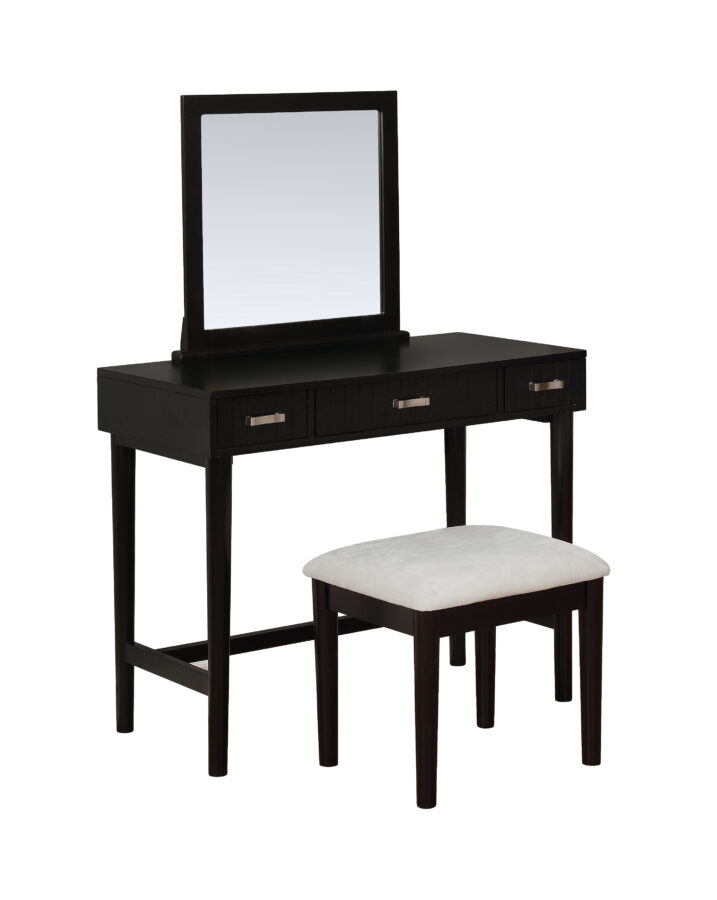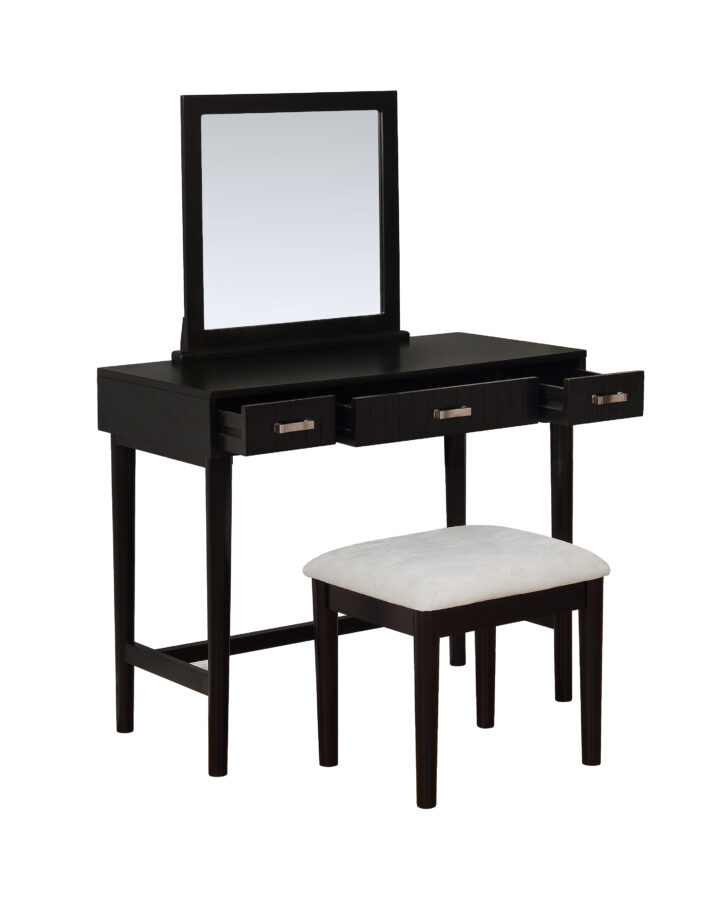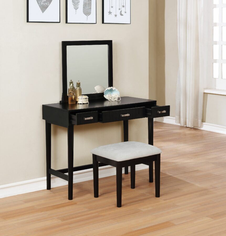 • Desain modern dengan cermin persegi dan terdapat laci kotak rias sebagai tempat kosmetik dan perhiasan