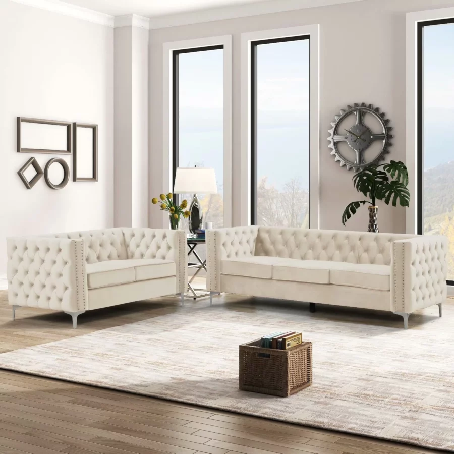 - Gaya Kontemporer dan Klasik: Set Sofa ruang tamu ini dilapisi dengan kain beludru lembut, dengan profil yang disesuaikan dan gaya yang chic, memberi Anda rasa nyaman dan cocok untuk semua jenis dekorasi ruang tamu.