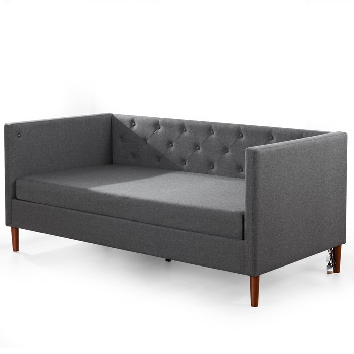 Terinspirasi oleh gaya canggih terlaris kami, Sofa Bed Kayu Minimalis Olinger adalah bagian yang hilang yang akan melengkapi kamar tamu, kamar asrama, kantor, atau apartemen kecil Anda dengan kenyamanan, gaya, dan penggunaan multifungsi! Dirancang untuk mengubah dengan mudah dari sofa ke tempat tidur, fondasi platform berlapis yang cantik ini dilengkapi dengan penutup yang nyaman dan pas untuk kasur yang sesuai dengan pelapis rangka untuk menciptakan sofa yang tampak kohesif.