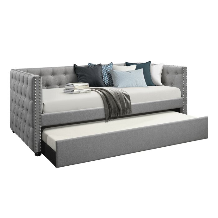 - Kayu Mahoni Solid : Sofa bed minimalis juga dibuat menggunakan kayu mahoni. Kayu mahoni adalah salah satu jenis kayu yang sangat populer untuk digunakan sebagai material furniture. Kayu mahoni terkenal memiliki tekstur yang lebih lunak dibandingkan dengan jenis kayu lain sehingga mudah dibentuk. Karakter serat kayu mahoni yang halus dan lurus juga akan memberikan kesan mewah untuk furniture Anda.