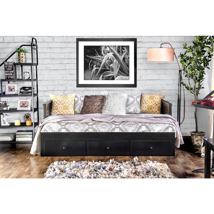 Sofa Bed Minimalis Potts ini merupakan tambahan penting untuk ruang tamu atau kantor rumah Anda yang berfungsi ganda sebagai ruang tamu. Itu terbuat dari kayu solid dan veneer kayu di sepanjang sisi dan belakang untuk desain yang terinspirasi pantai. Tiga laci di dasar daybed menawarkan banyak tempat penyimpanan untuk seprai, selimut, atau bahkan permainan papan cadangan. Daybed ini cocok untuk kasur full size, dan dilengkapi dengan bilah sehingga Anda tidak perlu menambahkan box spring di bawah kasur pilihan Anda.