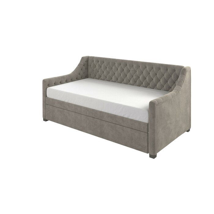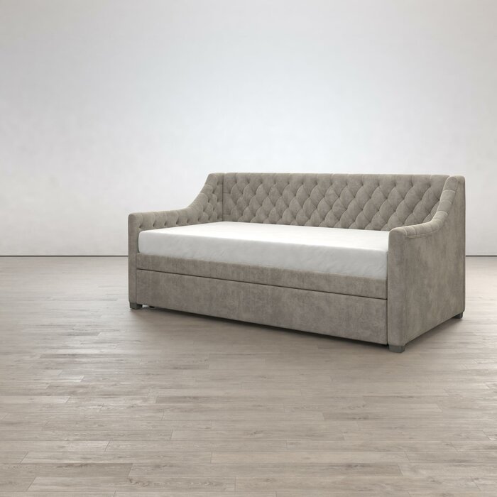 Tambahkan sentuhan glamor ke kamar Anda dengan Sofa Bed Murah Meriah Monarch. Dengan kain beludru yang indah dan detail berumbai berlian di bagian punggung dan lengan, karya bergaya abad pertengahan ini adalah tempat yang ideal untuk bersantai, membaca, dan tidur. Selain itu, sangat cocok untuk menginap karena cocok untuk dua kasur twin dengan tambahan trundle tarik. Sofa daybed ini memiliki sistem bilah kayu yang memberikan ventilasi yang baik ke kasur Anda, membuatnya lebih segar lebih lama.